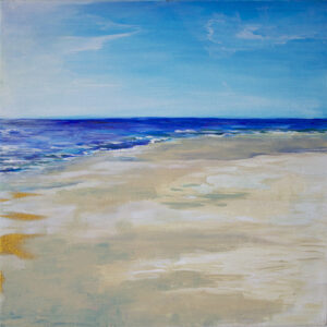 With the easel and cart through the dunes to the beach. After a few meager years I finally went on summer holidays, on forty minutes away from my house. Sunny weather in Rockanje, and also some rain. The sea is almost always quiet. Blue skies, lots of sand and sand-coloured things of course, brown slab at low tide.